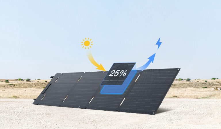 TOPCon技術を採用したソーラーパネルは、従来の太陽光パネルに比べて変換効率が高く、25%の発電効率を達成しました。日照が少ない曇りの日や、朝夕の弱い光でも効果的に発電できます。